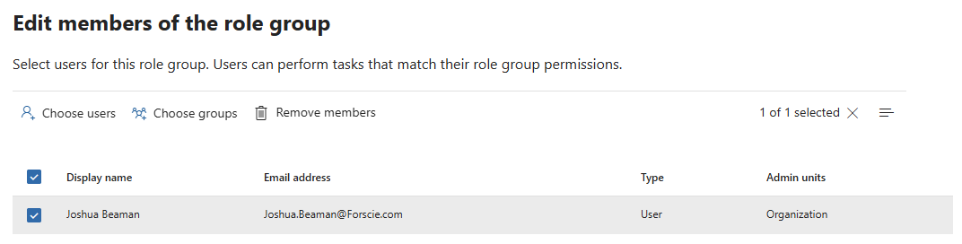 Members, Entra ID users or groups, can be added to the role group and will inherit the associated permissions.